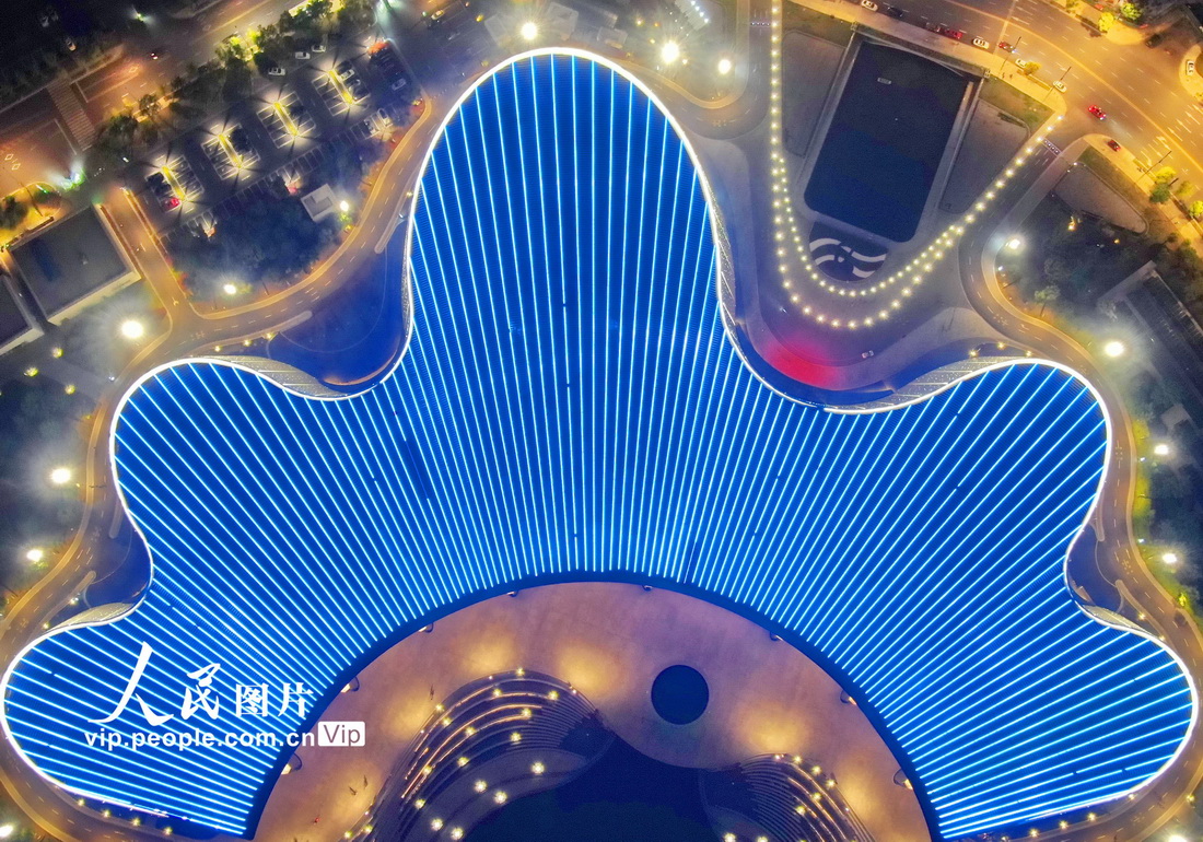 2023年5月1日晚拍攝的江蘇南通大劇院亮燈時的美麗夜景。許叢軍攝(人民圖片網)