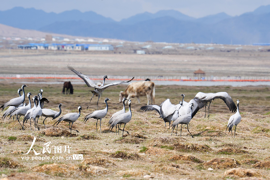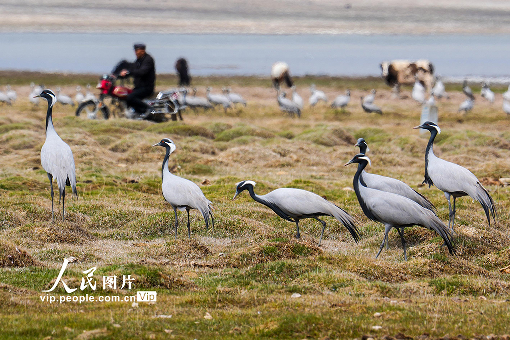 連日來,隨著氣溫回升,大批從北方南遷的蓑羽鶴、沙丘鶴、大雁、赤麻鴨等候鳥飛臨新疆巴裡坤哈薩克自治縣的巴裡坤湖及周邊濕地覓食,為濕地增添了一道人與自然和諧共生的靚麗風景。普拉提﹒尼亞孜攝(人民圖片網)