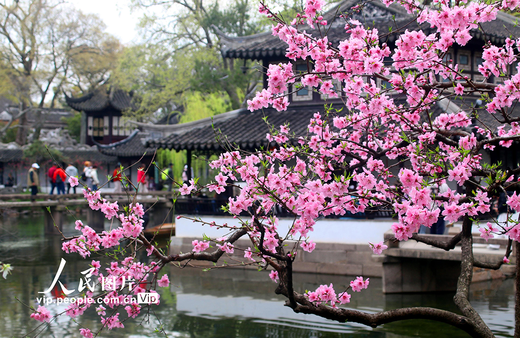2026年3月27日,江苏苏州拙政园内桃花竞放,生机盎然,吸引众多游客前来赏…