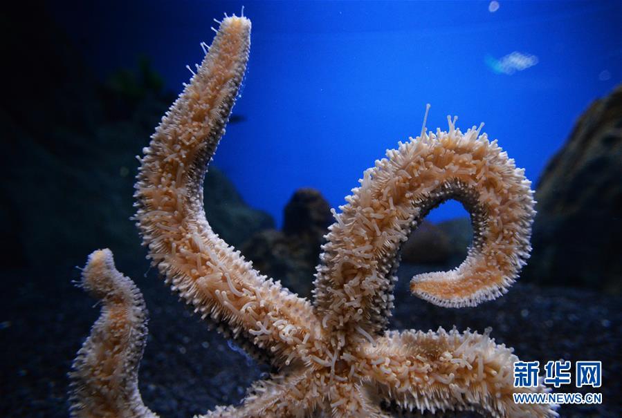 这是2016年12月28日在符拉迪沃斯托克滨海海洋水族馆里拍摄的海星。该海洋水族馆位于俄罗斯远东城市符拉迪沃斯托克的俄罗斯岛,占地90公顷,是俄罗斯最大的海洋馆,拥有约500种鱼类,生物总量超过2万。新华社/卫星社