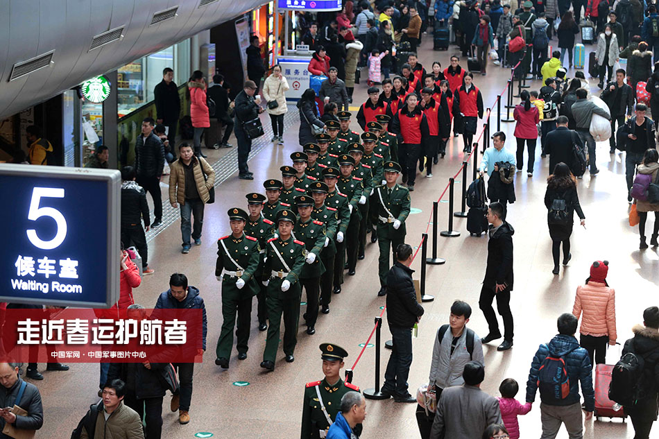 他们当中有的是不满20岁的新战士,第一次单独执勤,与父母在火车站相遇却不能离开岗位半步。他们当中有参与春运执勤多年的老兵,年年春运在火车站过节。奔走在回家的路上,当您从他们的身边走过,向他们行个注目礼,向他们问句好。最主要的是您要看好自己的物品,自觉排队候车买票,看护好自己的行李,自觉维护公共场所秩序。