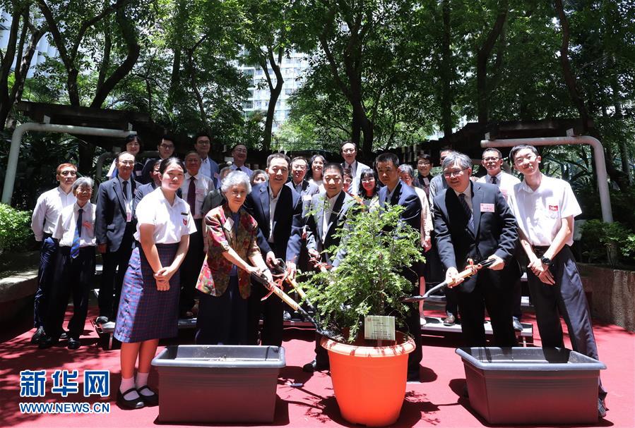 6月28日,3名航天员与嘉宾在分享会后出席植树活动。当日,为庆祝香港回归祖国20周年,香港中华基金中学举行“中国航天科技的发展与成就分享会”,邀请航天员杨利伟、景海鹏和陈冬与800多名师生进行互动交流。新华社记者 吕小炜 摄