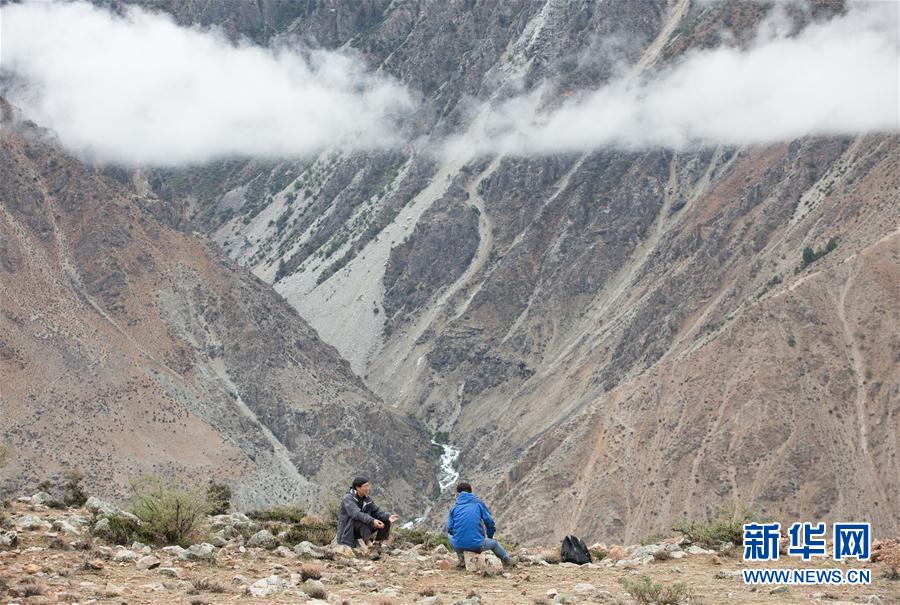 中国科学院成都山地灾害与环境研究所总工程师游勇(左)和李战鲁在西藏自治区八宿县白玛镇旺北村滑坡现场讨论考察情况(6月25日摄)。