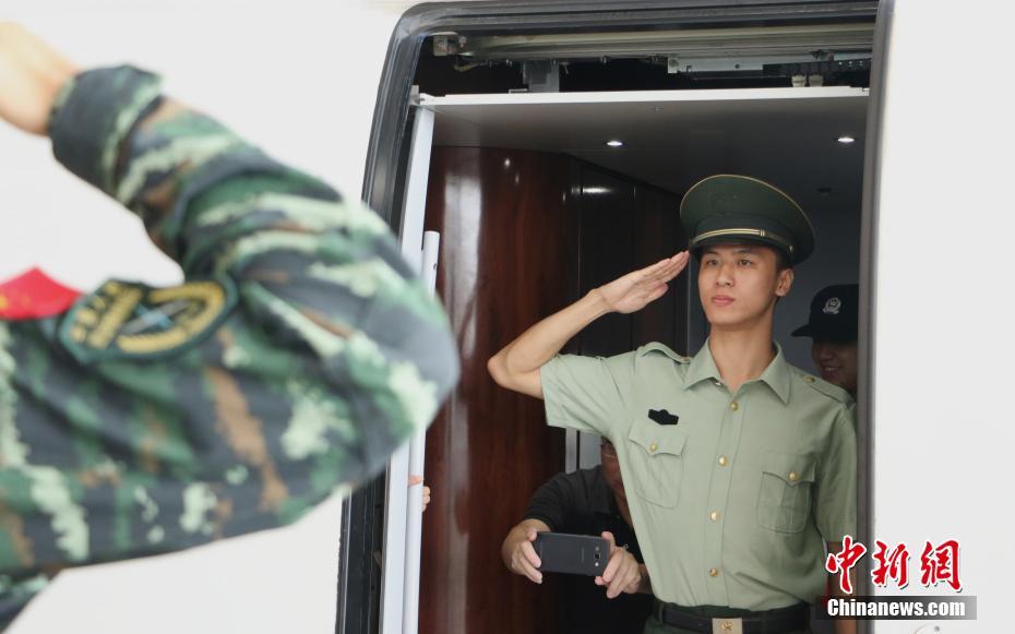 9月5日,武警浙江省总队杭州直属支队266名老兵正式退伍,昔日铁汉如今泪洒站台,不忍离别。图为一名退伍老兵登上火车后向战友敬礼。 王刚 摄