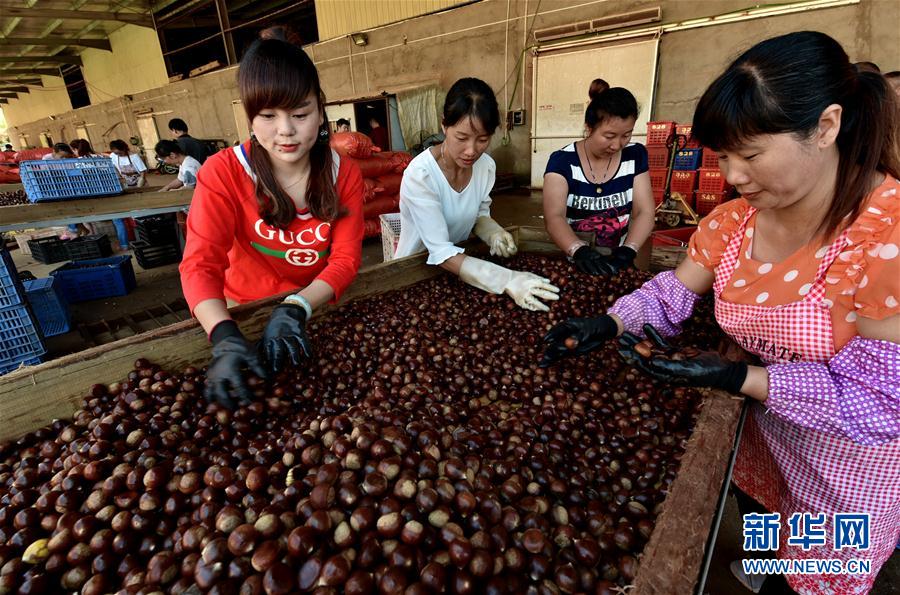 福建省建瓯市锥栗正值采收旺季,当地农民纷纷忙着采收、加工锥栗。近年来,建瓯市大力发展林业经济,锥栗种植面积达42万亩,2016年锥栗产量3.3万吨,产值4.6亿元。锥栗生产已成为当地农民增收致富的支柱产业。