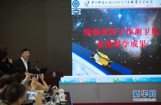 “悟空”首席科学家、中科院紫金山天文台副台长常进在中国科学院发布暗物质粒子探测卫星首批科学成果(11月27日摄)。
