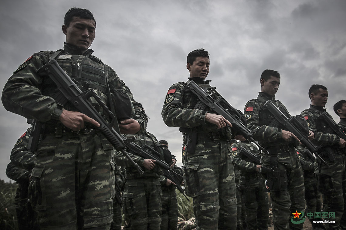 训练当日为“国家公祭日”,特战队员训练前集体为南京大屠杀遇难同胞默哀。