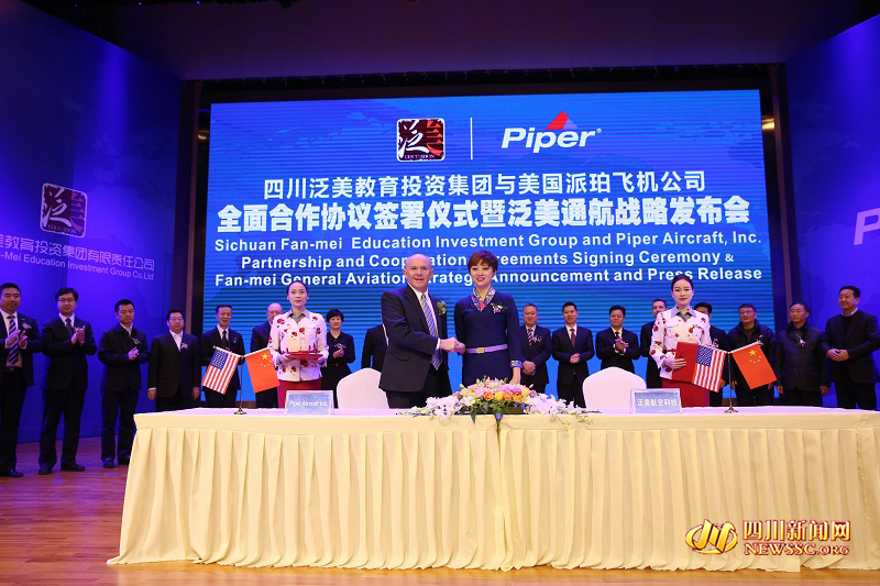 2月2日,四川泛美教育投资集团与美国派珀飞机公司(Piper Aircraft Inc.)签订全面合作协议。
