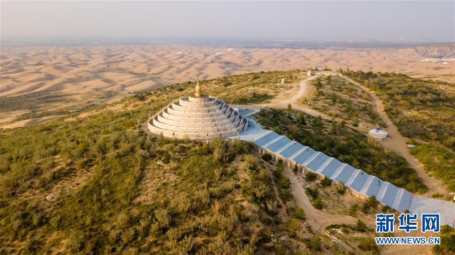 库布其沙漠中银肯塔拉敖包周边种植的防风固沙林(7月31日无人机拍摄)。 新华社记者彭源摄