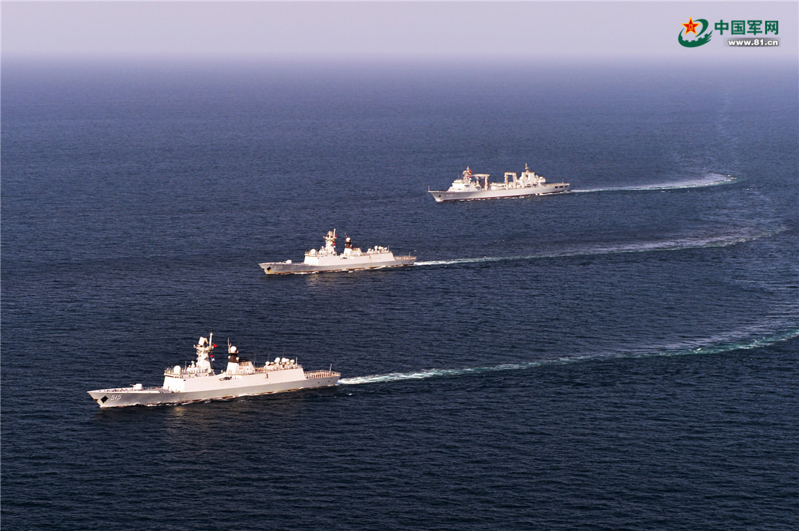 第二十九批护航编队与第三十批护航编队分航后,驶离亚丁湾索马里海域。张海龙 摄