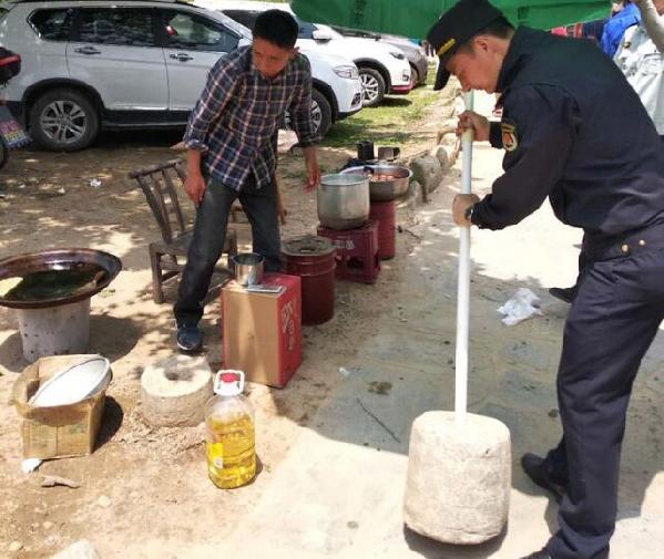 黄陂区城管局长岭城管中队每天派出6名城管队员,在景区内清理整治乱摆摊设点、占道经营的乱象,保障游客的良好旅游体验。(张潘)