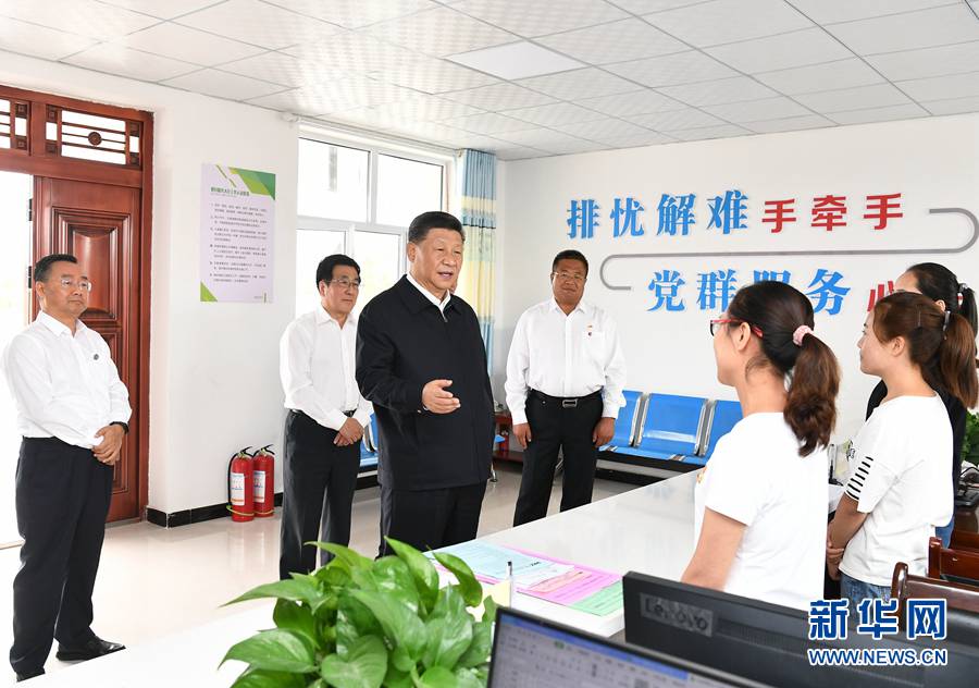 8月19日至22日,中共中央总书记、国家主席、中央军委主席习近平在甘肃考察。这是21日上午,习近平在武威市古浪县黄花滩生态移民区富民新村党群服务中心考察。 新华社记者 谢环驰 摄