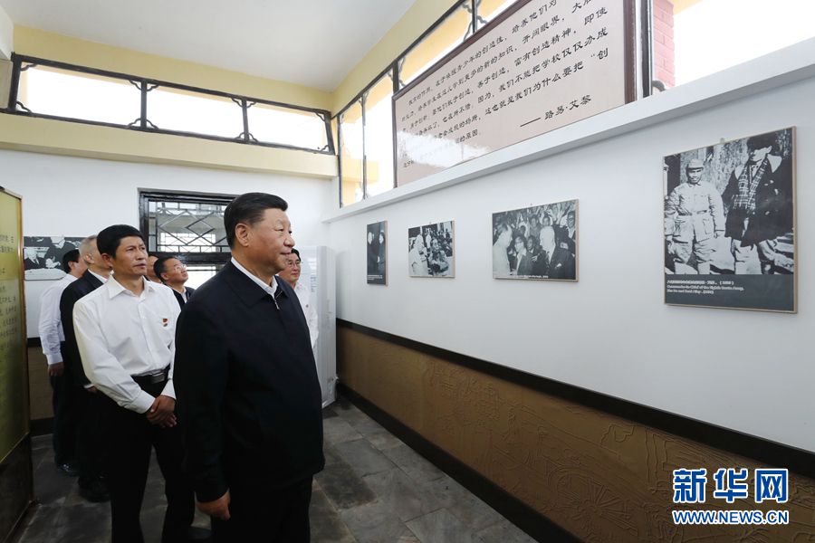 8月19日至22日,中共中央总书记、国家主席、中央军委主席习近平在甘肃考察。这是20日下午,习近平在张掖市山丹培黎学校参观学校创办人路易·艾黎故居。 新华社记者 鞠鹏 摄