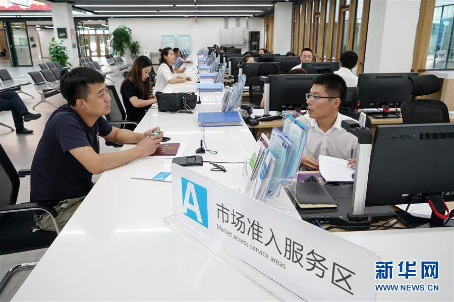 企业工作人员在雄安新区政务服务中心内办理业务(8月30日摄)。 记者从河北雄安新区管委会了解到,目前,雄安新区已转入大规模实质性开工建设阶段,今年69项重点建设项目已开工20个,剩余项目正在全力推进。京雄城际铁路、千年秀林、白洋淀生态修复等项目建设稳步推进。 新华社记者 牟宇 摄