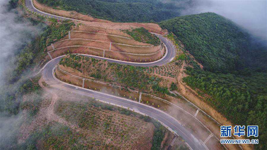 7月28日拍摄的凤翅山至蟒头山国家森林公园全域旅游示范路(无人机照片)。 位于陕西省延安市宜川县凤翅山至蟒头山国家森林公园间的全域旅游示范路沿途风景优美,时常可见翻腾的云海。示范路方便旅客观赏沿线丛林山水,也辐射带动了沿线3个贫困村的村民脱贫致富。 新华社发(赵洁 摄)