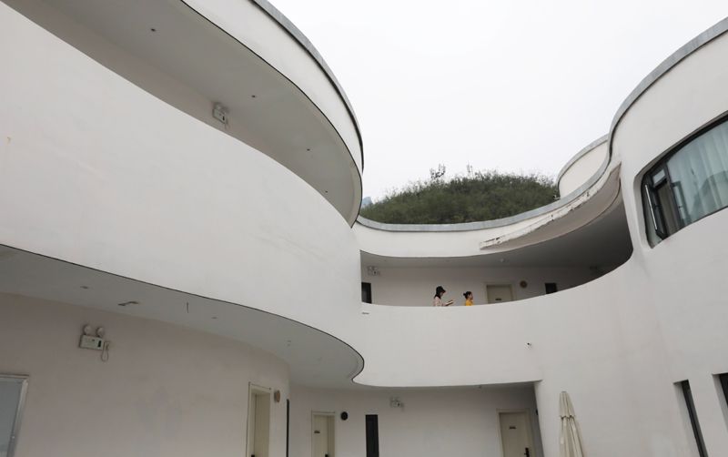 9月12日,游客在河南省修武县西村乡“云上院子”民宿酒店休息。