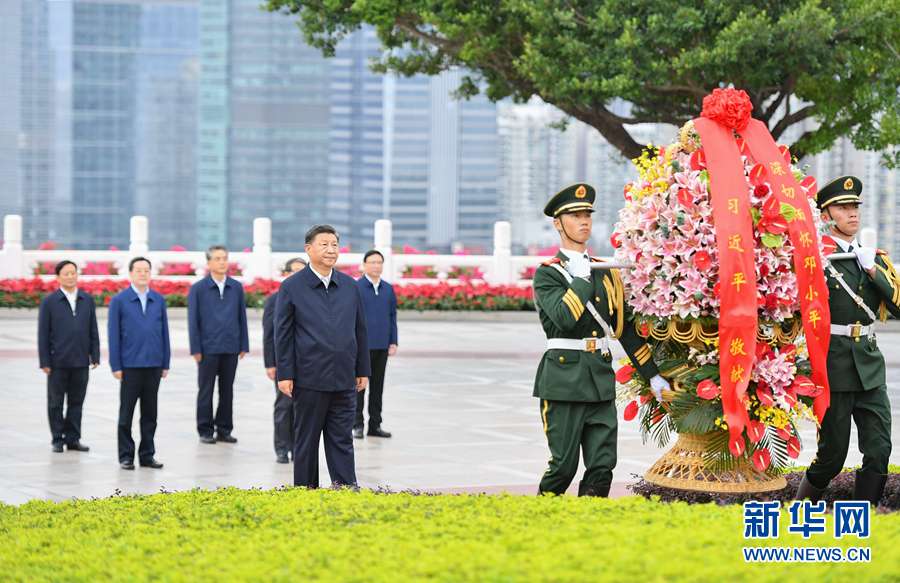 10月14日,深圳经济特区建立40周年庆祝大会在广东省深圳市隆重举行。中共中央总书记、国家主席、中央军委主席习近平在会上发表重要讲话。这是当天下午,习近平来到莲花山公园,向邓小平同志铜像敬献花篮。 新华社记者 李响 摄