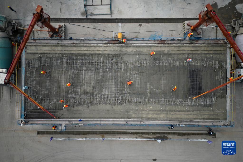 7月25日,在中铁二十二局集团有限公司伊春制梁场,工人在进行施工作业(无人机照片)。