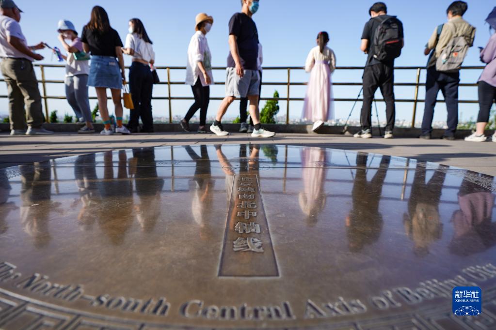 2022年9月18日,游客在北京景山上观赏中轴线景观。 新华社记者 陈钟昊 摄