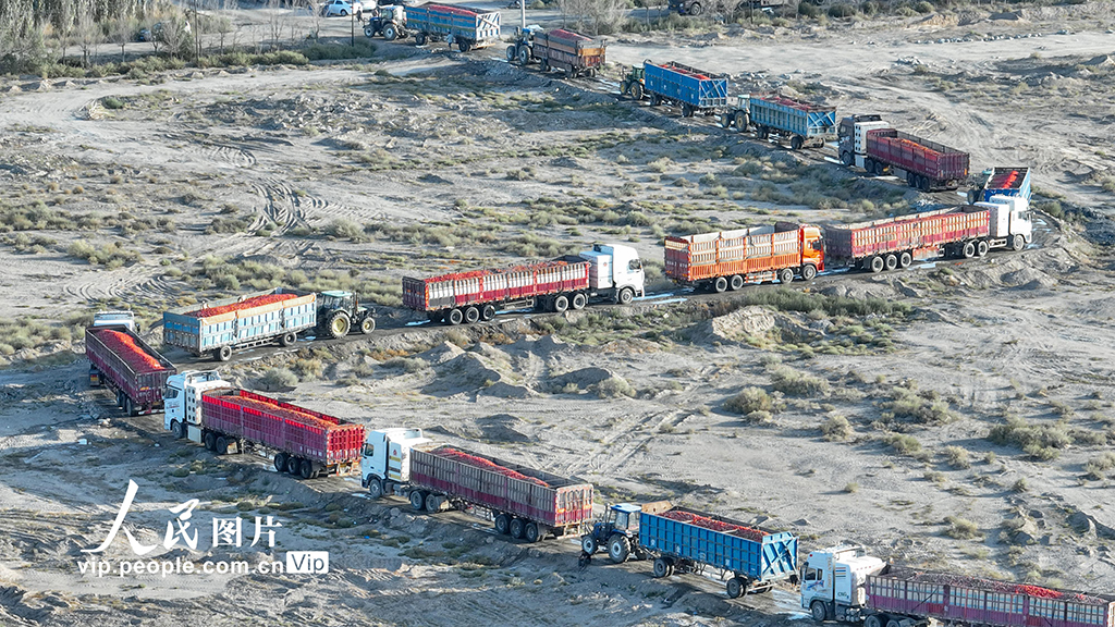 初秋时节,位于新疆维吾尔自治区巴音郭楞蒙古自治州博湖县种植的番茄采收进入高峰期。年磊摄(人民图片网)