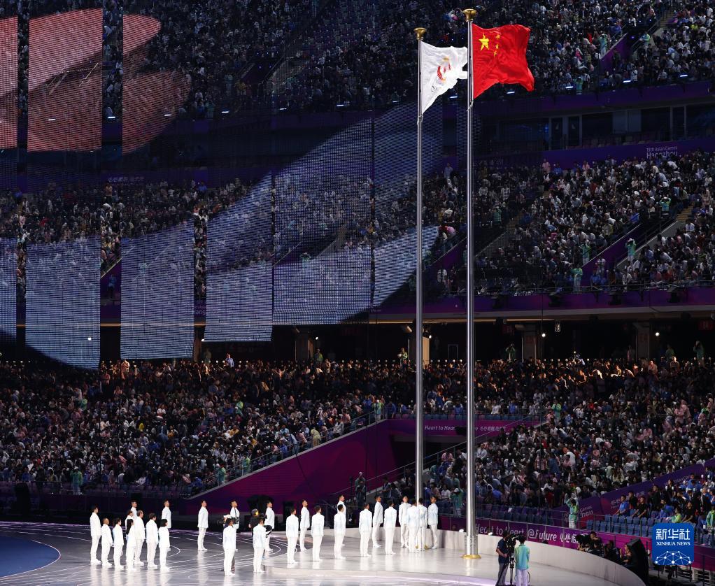 9月23日,中华人民共和国国旗和亚奥理事会会旗在开幕式上升起。