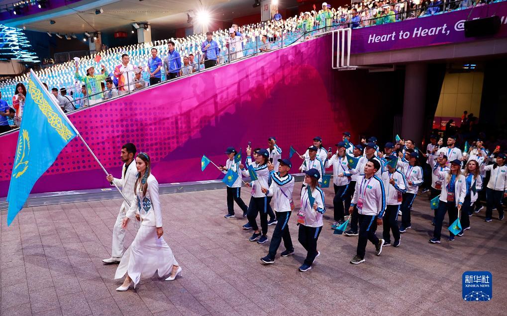 9月23日,哈萨克斯坦代表团在开幕式上入场。