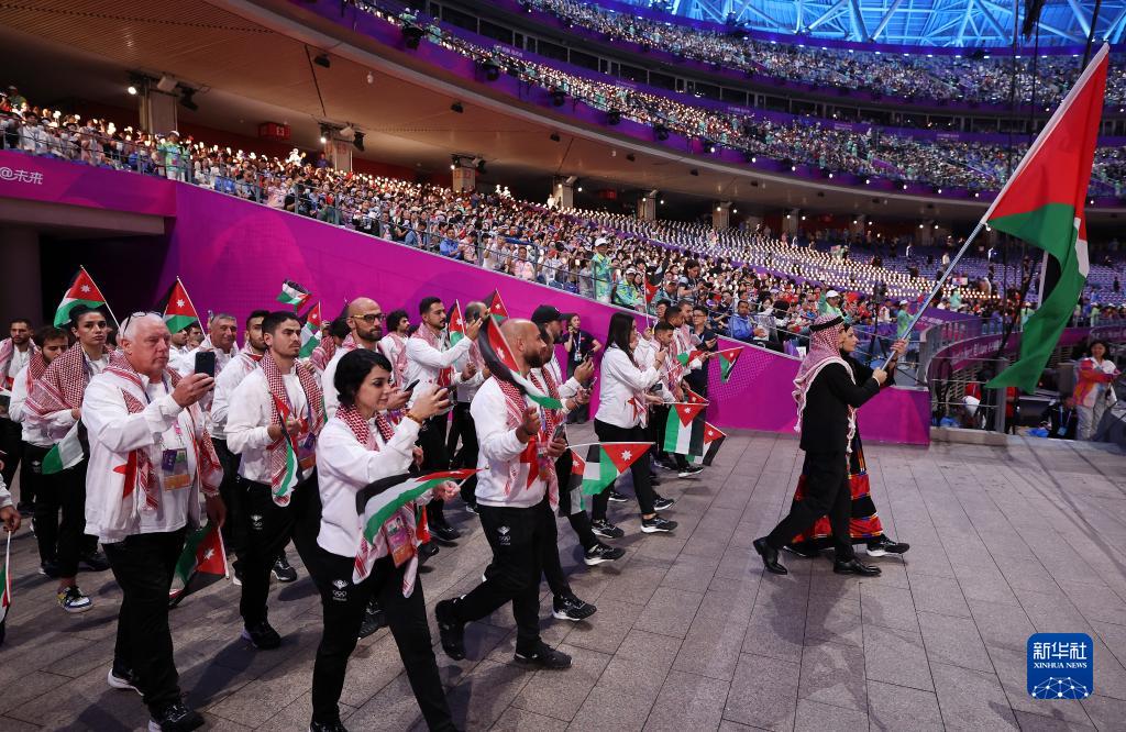 9月23日,约旦代表团在开幕式上入场。