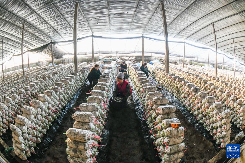 1月5日,农民在河北省遵化市东新庄镇袖珍菇种植基地采摘袖珍菇。