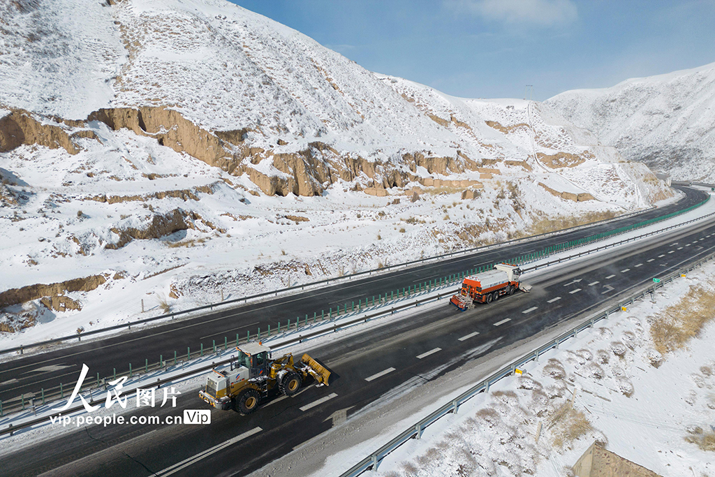 1月19日至21日,受冷空气影响,甘肃省庆阳、酒泉、武威、定西、兰州、临夏、甘南等地迎来今冬第四轮大范围降雪。为保障道路安全通行,武威公路事业发展中心组织全体干部职工迅速投入到打冰除雪第一线。姜爱平摄(人民图片网)