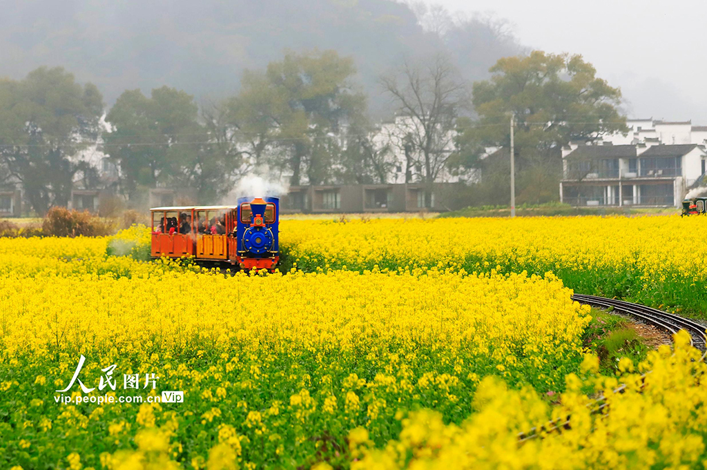 随着气温逐渐升高,江西婺源平原油菜花陆续绽放,迎来一年中最美的季节。金灿灿的花海与远处的徽派民居、群山交相呼应,构成一幅秀美春光图,吸引游客前来踏青赏花,享受美好春光。潘祯祥摄(人民图片网)