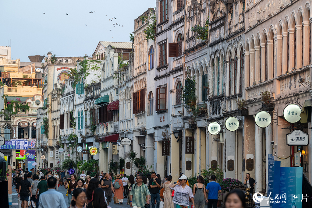 近年来,海口骑楼建筑历史文化街区逐步开展渐进式保护利用工作。在维护和修复景区内历史建筑的同时,不断更新旅游新场景、新业态,优化各类基础设施,丰富日常文艺活动,增加景区可参观面积,商业服务和旅游服务质量快速提升,成为“本地人常到、外地人必到”的“文商旅”集合体。人民网记者 翁奇羽摄