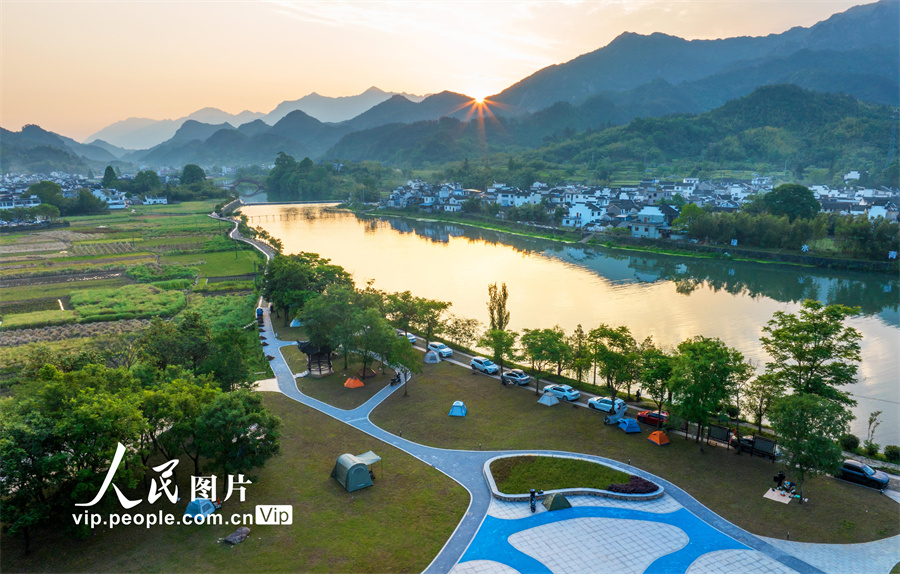 2024年5月3日,游客在安徽省宣城市绩溪县瀛洲镇龙川村游玩。当地以特色传统古村落文化保护和发掘为切入点,通过生态兴村、文化立村、产业旺村、善治乡村,推动文旅融合提质增效,实现旅游收入快速增长。周斯跃摄(人民图片网)