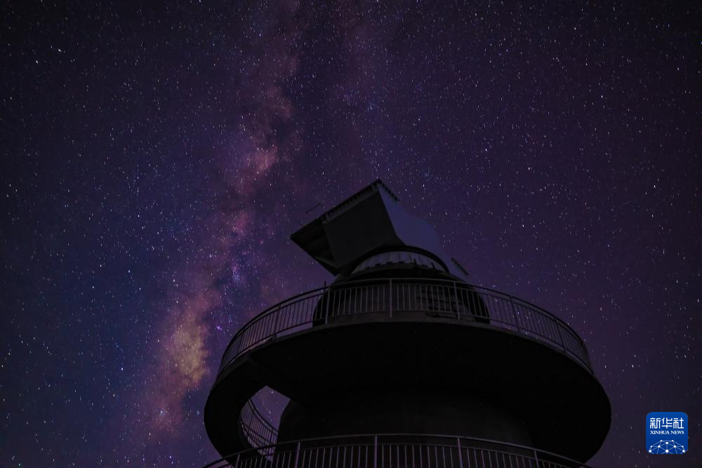 已经完成首吊的核心阵试验样机矗立在星空下(9月25日摄)。