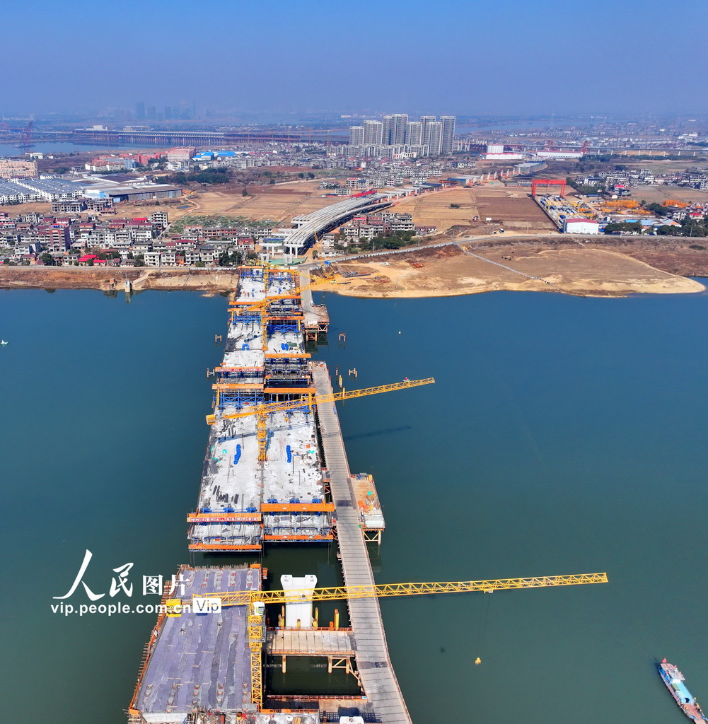 北二环一期隆兴大桥作为昌九高铁和城市快速路的重要连接通道,建成后,将在南昌北部地区增加一条重要的过江通道。这对于强化南昌北部经开区、扬子洲、蒋巷、城东等片区之间的联系,支持和引导城市空间拓展,构筑城市二环,缓解一环交通压力,构建城市骨干路网结构、完善客货运体系具有重要意义。朱海鹏摄(人民图片网)