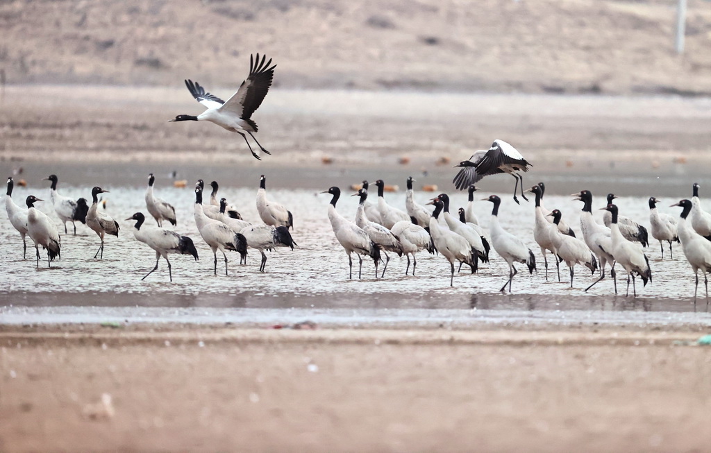 近日,气候逐渐转暖,黑颈鹤即将从越冬地迁徙到繁殖地,飞往色林错黑颈鹤国家级自然保护区、羌塘国家级自然保护区以及甘肃、青海等地。