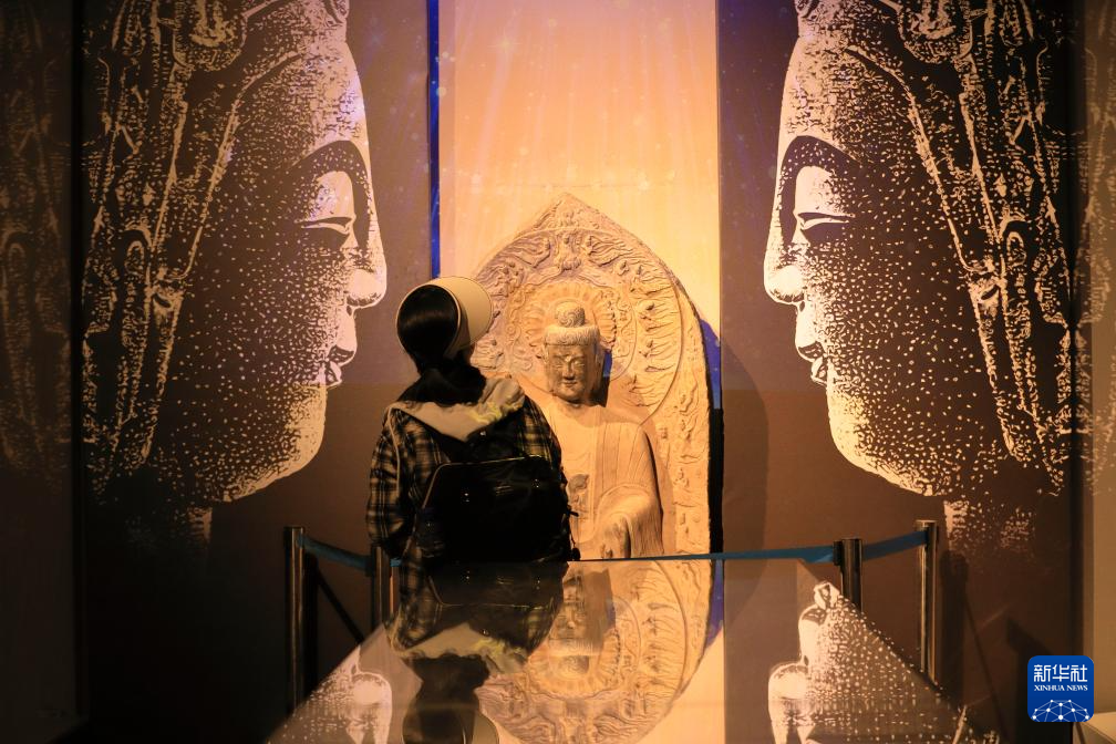 5月1日,游客在甘肃省天水市博物馆参观。