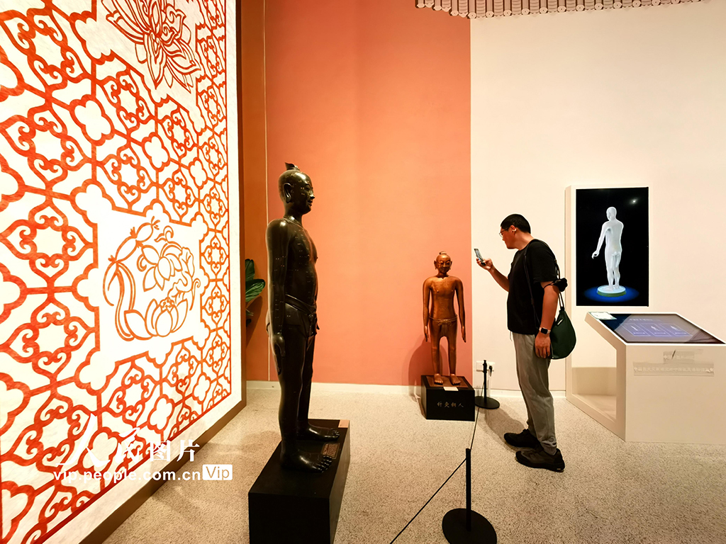 本次展览设置"文脉赓续 大医精诚""生命智慧 上工之道""四时颐养 形与神俱"三大主题单元,集中展示近50项传统医药类非物质文化遗产代表性项目,全方位呈现中医药作为"开启中华文明宝库之钥匙"的多元价值体系。樊甲山摄(人民图片网)