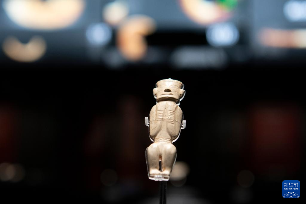 这是凌家滩遗址博物馆展出的玉蹲(坐)姿人(5月16日摄)。