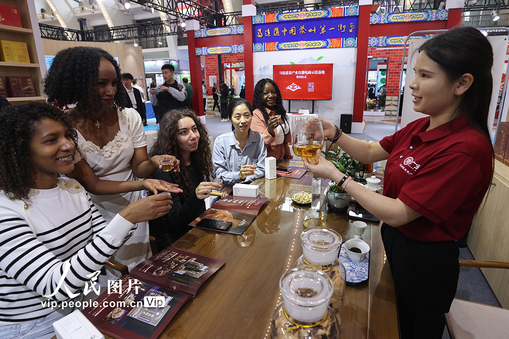 2025年5月23日,北京国际茶业展在北京展览馆开幕。本届展会以“以茶结缘、相聚北京城,以诚会友、品饮世界茶”为主题,吸引400余家茶企参展,集中展示六大茶类及茶具、茶叶深加工产品、新式茶饮和茶文化传播等成果,全方位呈现茶产业链。展会期间还通过举办多场推介、茶会等活动,为行业交流与茶文化推广搭建平台。陈晓根摄(人民图片网)