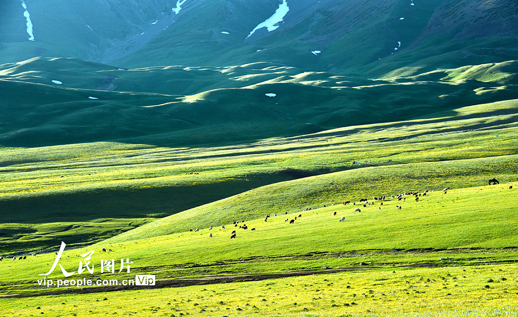 2025年5月27日,新疆伊犁哈萨克自治州伊宁县境内的托乎拉苏大草原夏季景色优美。巴合达吾来提·巴吐别克摄(人民图片网)