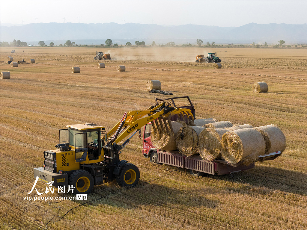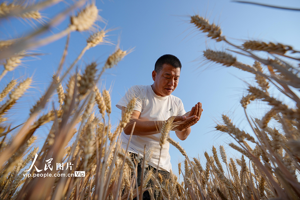 “三夏”时节,山西省运城市430多万亩小麦进入成熟收获期,当地农户抢抓晴好天气争分夺秒进行麦收作业,确保夏粮颗粒归仓。闫鑫摄(人民图片网)