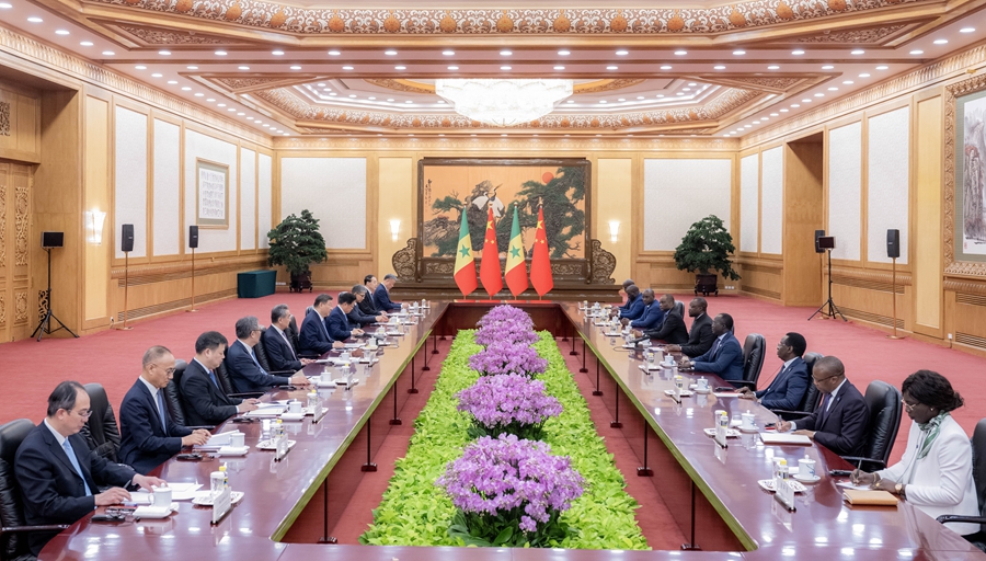 6月27日上午,国家主席习近平在北京人民大会堂会见来华出席夏季达沃斯论坛的塞内加尔总理松科。
