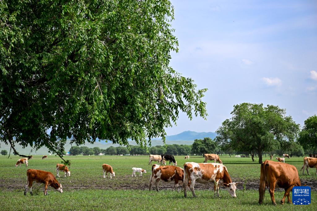 7月4日在内蒙古兴安盟科尔沁右翼前旗乌兰毛都草原拍摄的牛群。