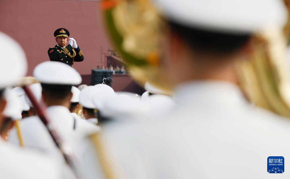 9月3日,纪念中国人民抗日战争暨世界反法西斯战争胜利80周年大会在北京隆重举行。这是中国人民解放军联合军乐团在演奏。