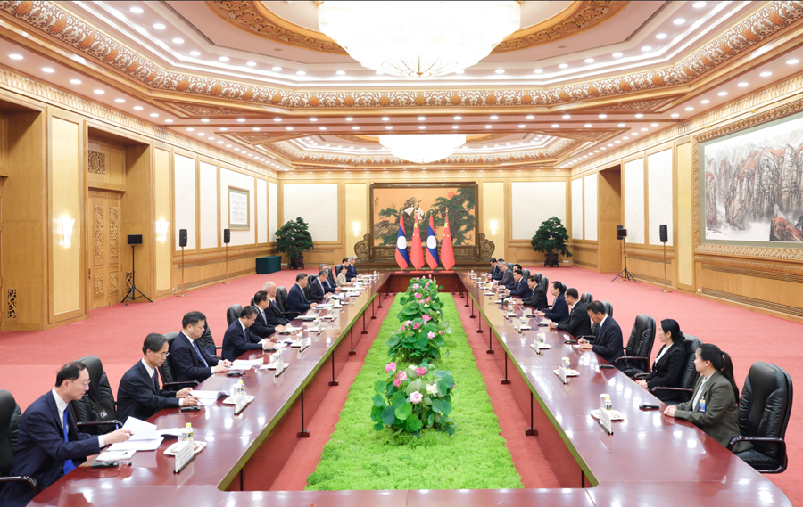 9月4日上午,中共中央总书记、国家主席习近平在北京人民大会堂会见来华出席2025年上海合作组织峰会和纪念中国人民抗日战争暨世界反法西斯战争胜利80周年活动并进行工作访问的老挝人民革命党中央总书记、国家主席通伦。