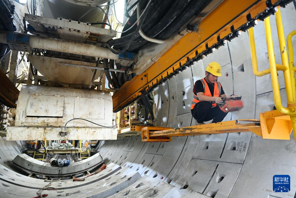 10月2日,中铁二十局工人在河北省石家庄市城市轨道交通5号线一期03工区施工现场作业。