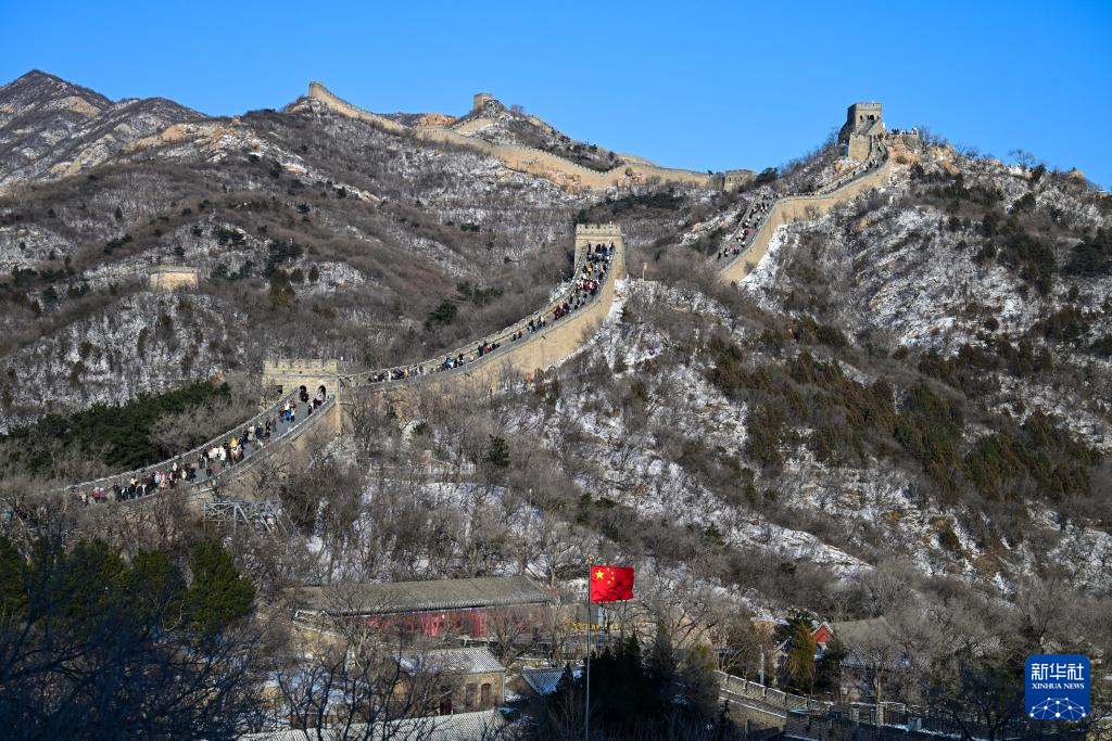 12月13日拍摄的北京八达岭长城雪景。