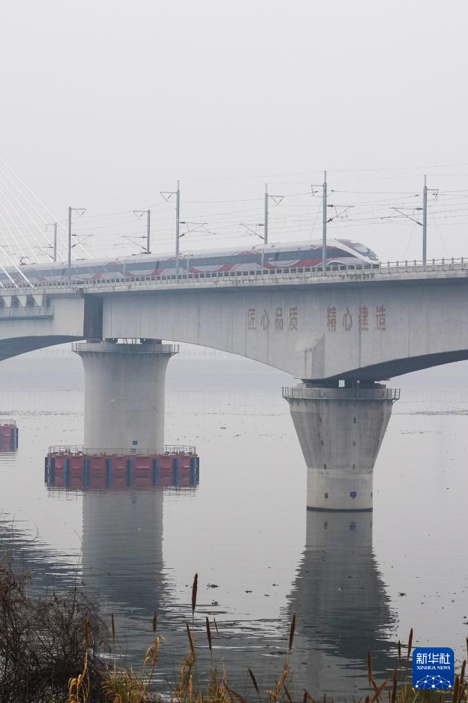 2月14日,列车在金建高铁兰江特大桥上行驶。