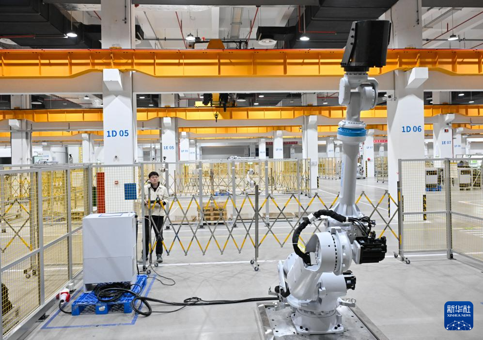 3月17日,在位于南京市江宁开发区的汇川技术南京基地自动化车间内,机器人在进行出厂前测试。
