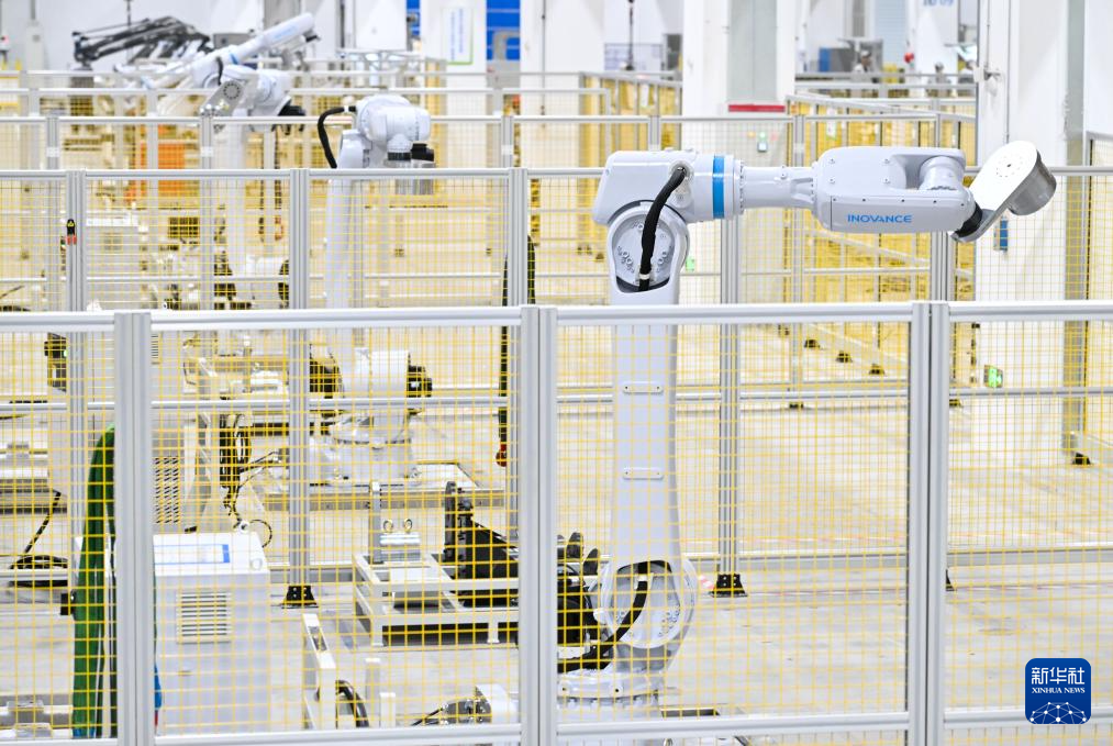 3月17日,在位于南京市江宁开发区的汇川技术南京基地自动化车间内,机器人在进行出厂前测试。
